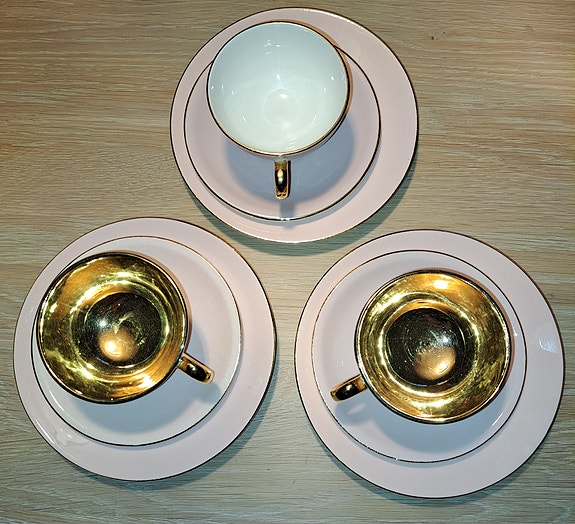 1 Vintage moccakuvert fra Norsk Egersund Flint, 3 deler. HVIT innside kopp.