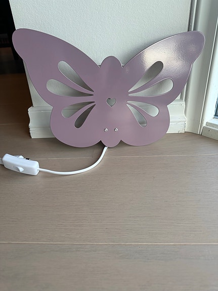 Nydelig rosa/lilla vegglampe med sommerfugl
