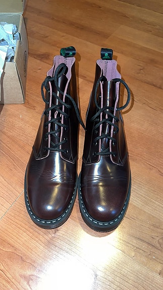 Solovair Burgundy Rub-Off 6 Eye Atronaut Boot - Helt Nye. Str 45