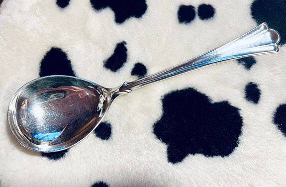 Sølvbestikk 🌟 Stor sølvskje 22 cm 🌟 Lilje. Sølvskje. Bruksgjenstand