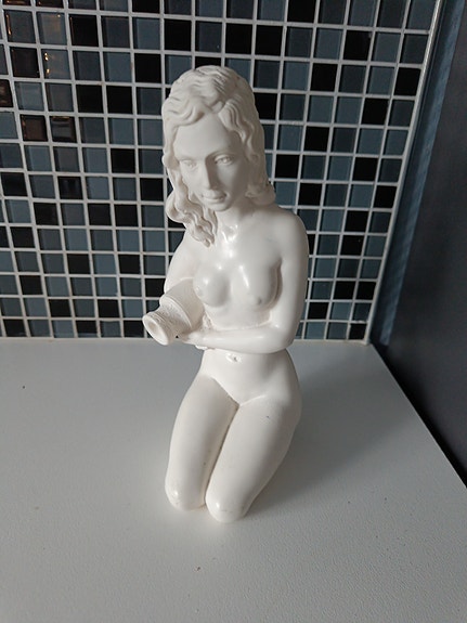 Hvit figur kvinne knelende med krukke