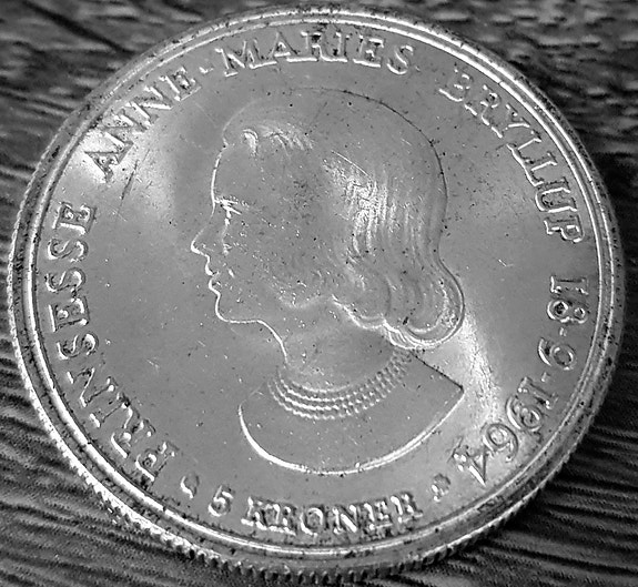 Dansk 5-kroner minnemynt fra 1964 Sølv