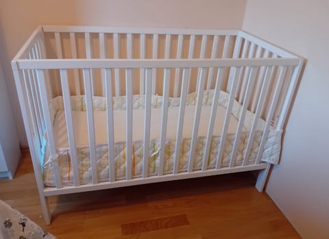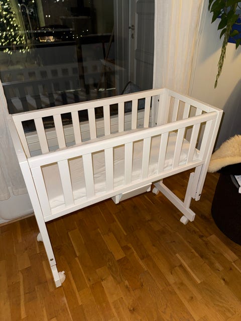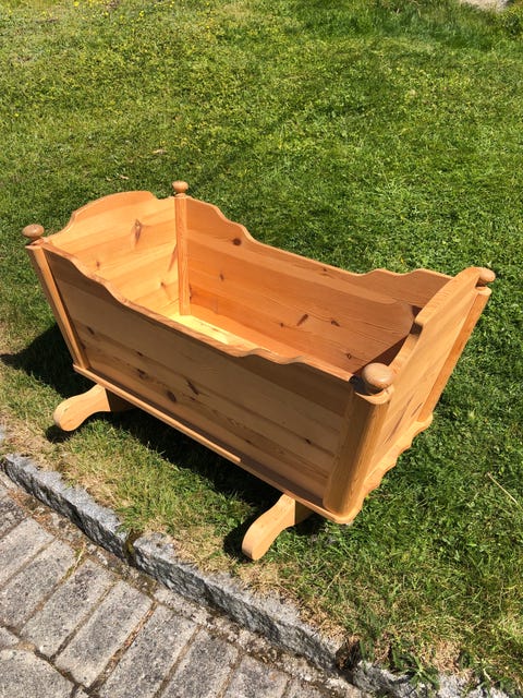 Vugge i tre, med madrass