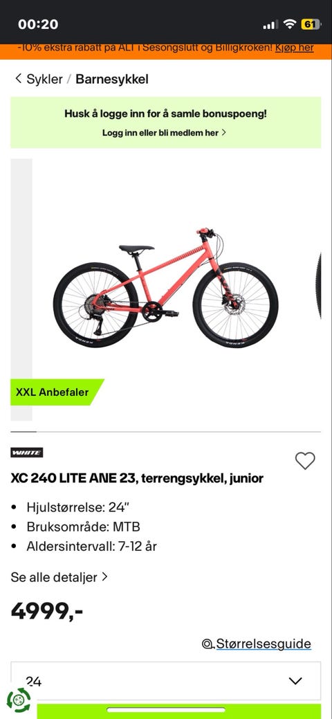 White barn sykkel 20 tommer