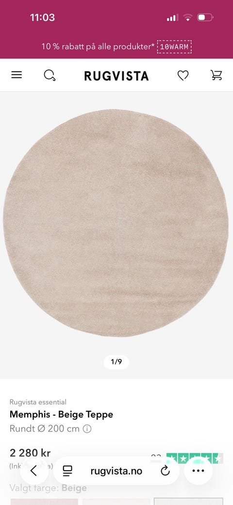 Vegg-til-vegg teppe lys beige