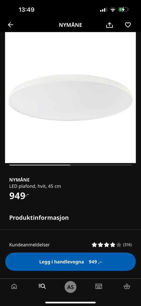 Led lampe selges
