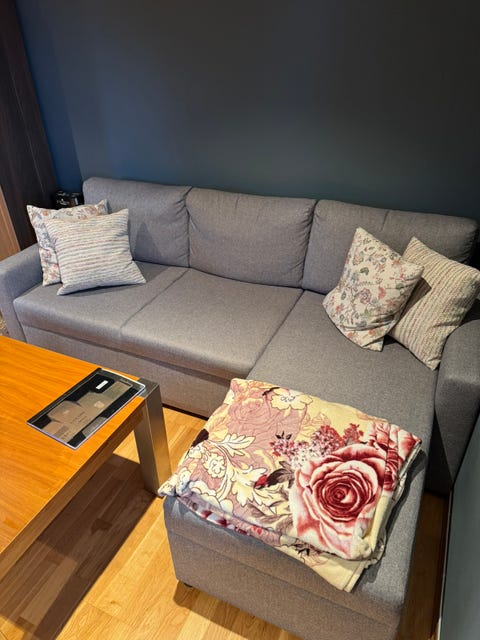 dobbelt seng og hjørnesofa