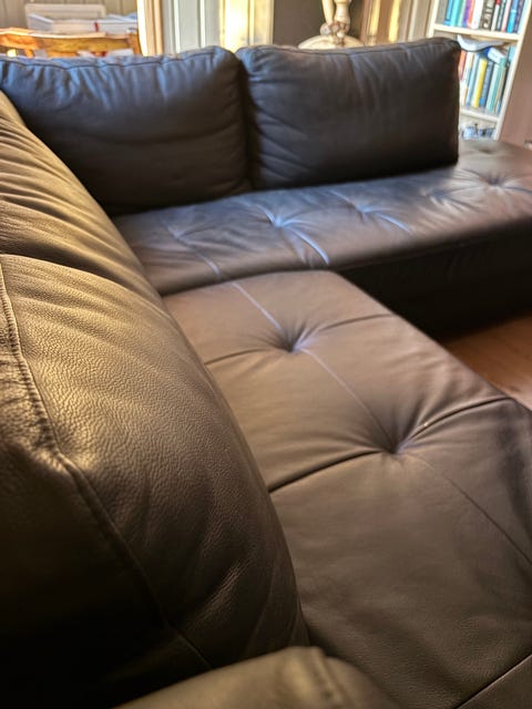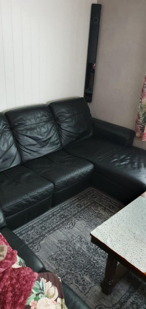 Sort skinnsofa til salgs!