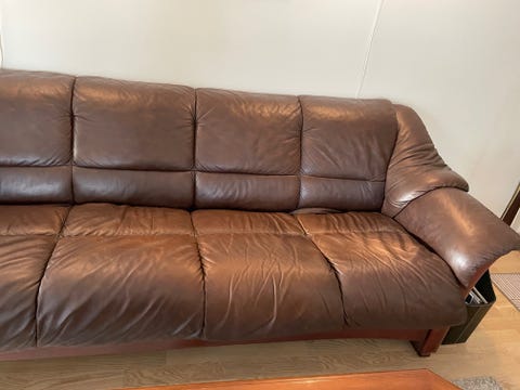 Skinnsofa gis bort
