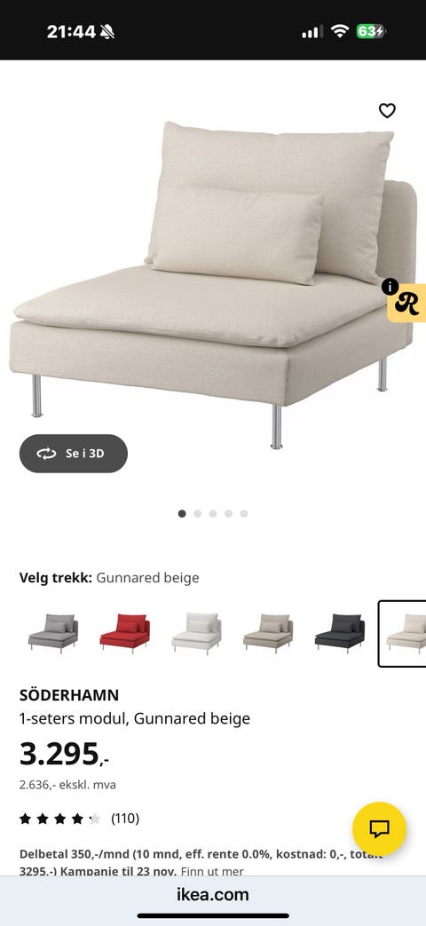 3-2 seter beige m/puter vendbare