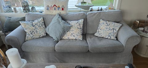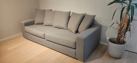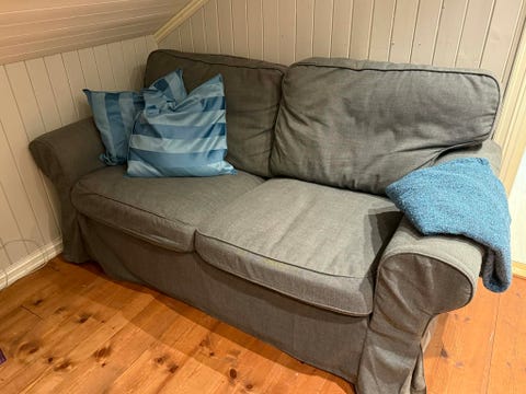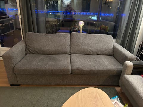 Grå 3-seter gis bort