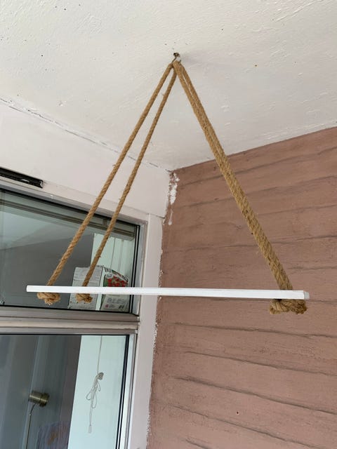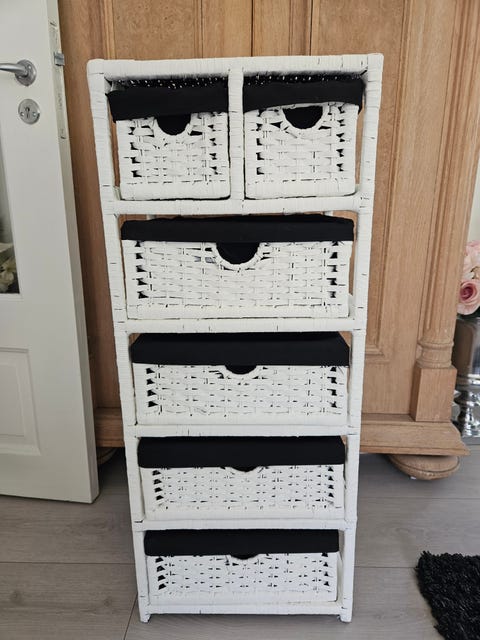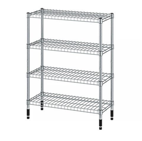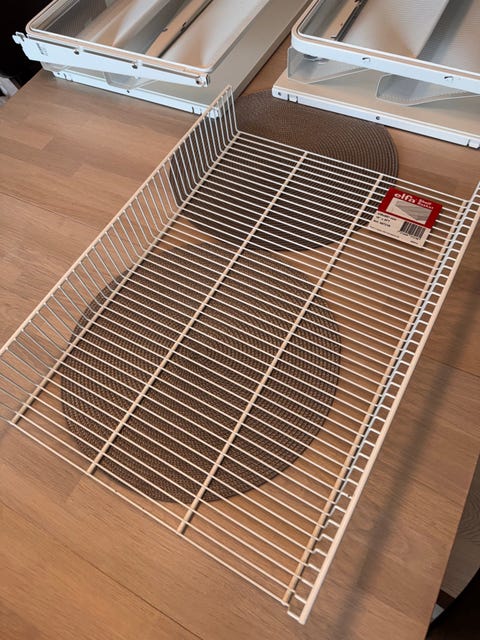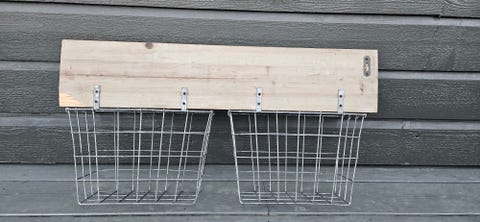 Hylle med trådkurv.