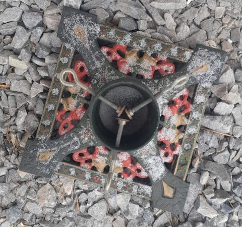 Juletrefot i metall gis bort