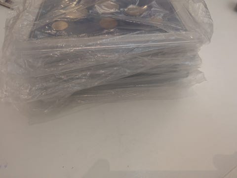 Rekvisita for mynter og flere.