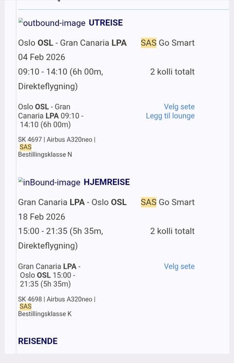 2 flybilleter,Oslo->Gran Canaria
