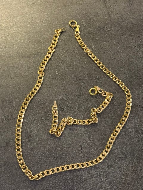 18k gullkjede og armbånd