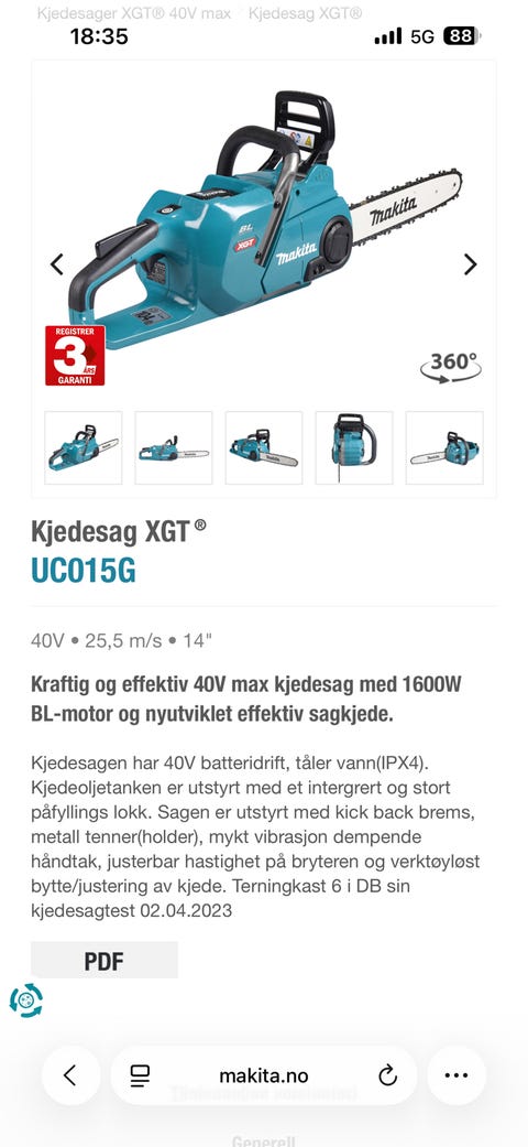 Makita UC015 kjedesag 40V