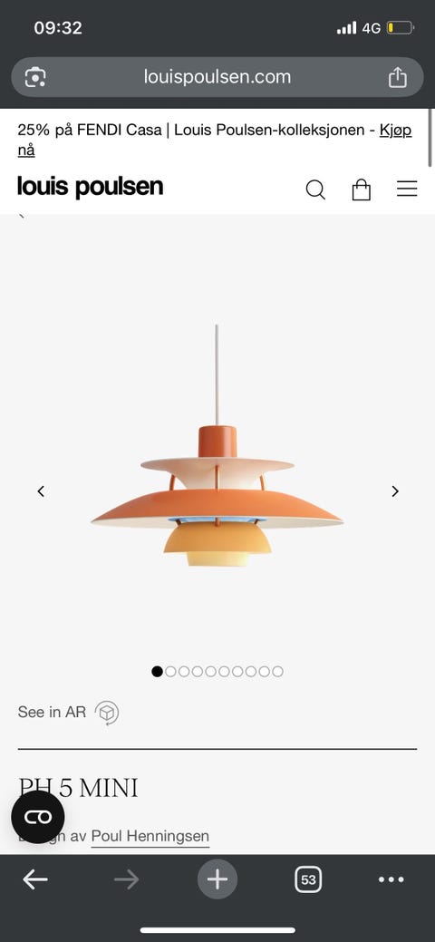 Fin hvit Ph 5 lampe selges