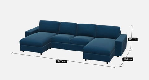 3 seter sofa med sjeselong.
