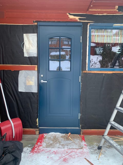 Ytterdør blå med vindu