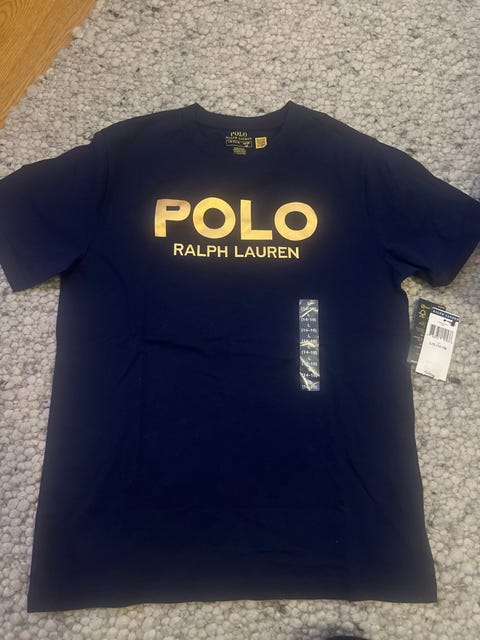 Ubrukt/ny! Superfin Ralph Lauren mørkblå t-skjorte med gullskrift 14-16år/160cm