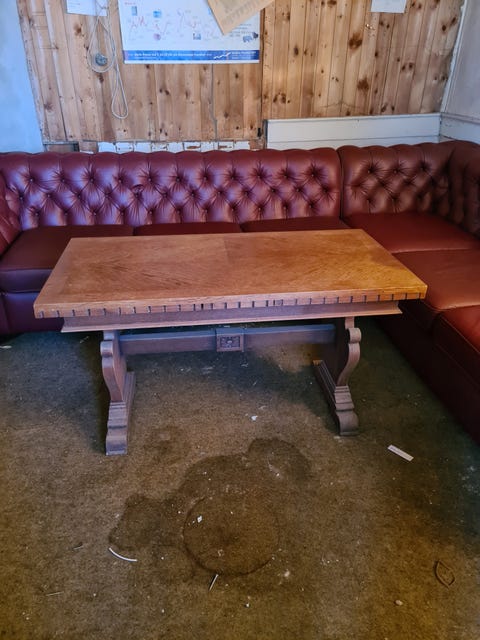 Massive eikebord til hytte stuen
