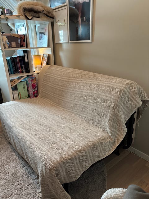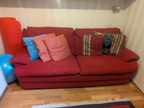 Koselig rødrutete sovesofa