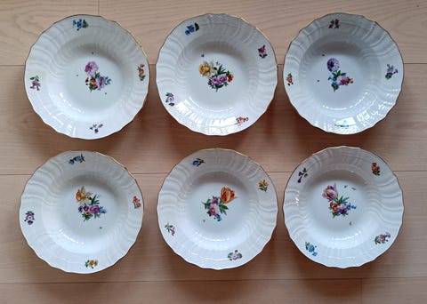 Nathalie servise fra Porsgrund P. med Gullkant Tallerkener, Kopper og bolle