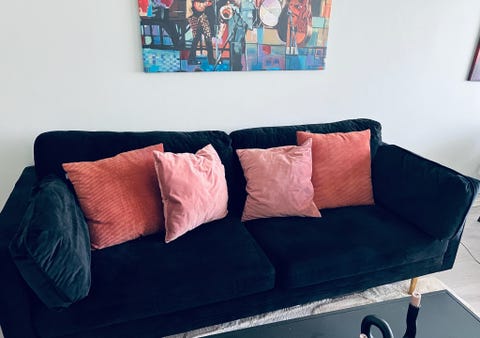 Sofa 3-seter svart stoff