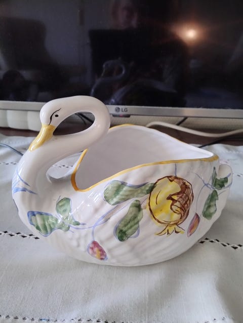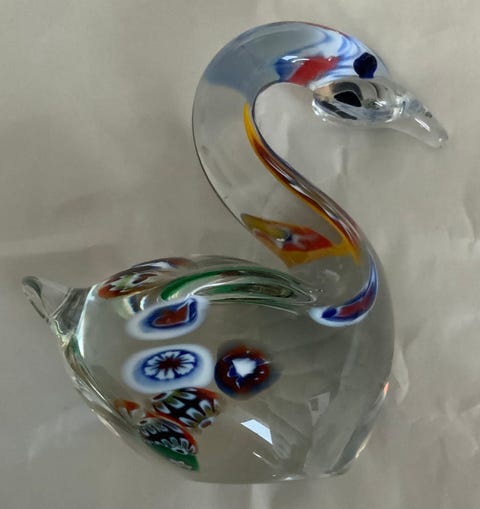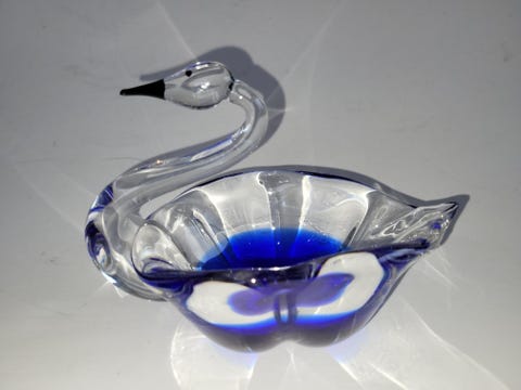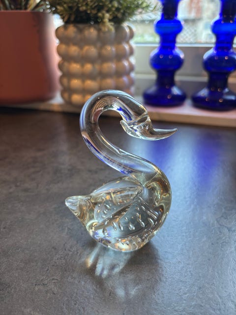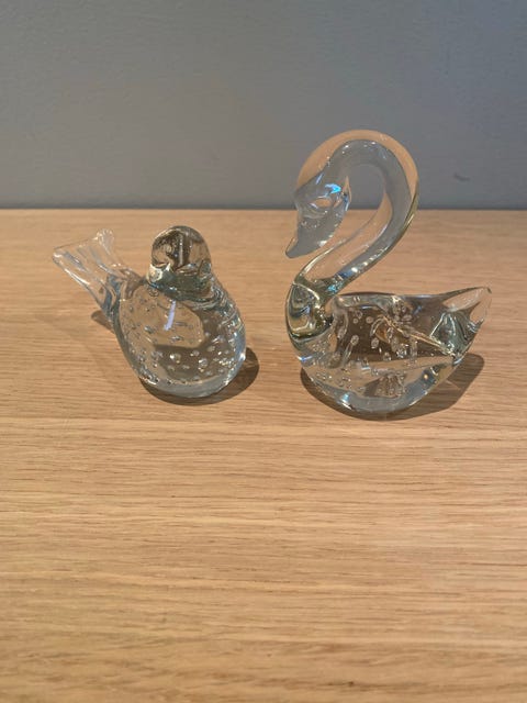 Glassfigur svane og fugl