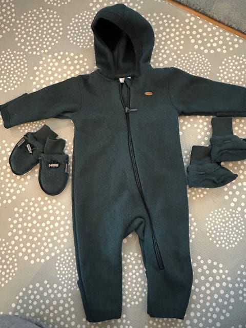 Ubrukt Hust & Claire dress I ullfleece str 68 med votter og tøfler