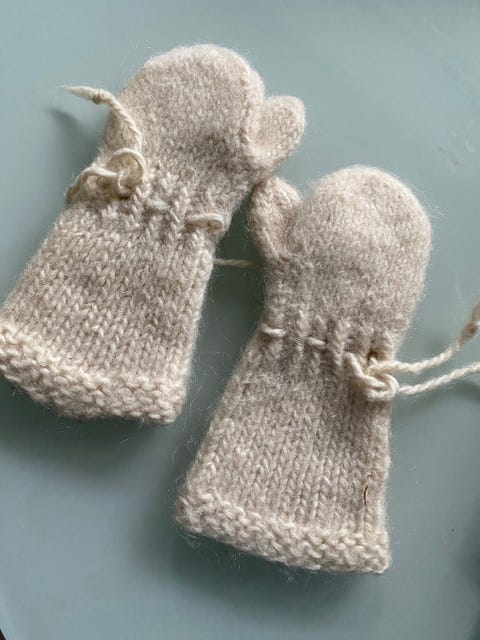 💖salgssum gis Leger uten grenser. Tovede hjemmestrikkede vintage babyvotter