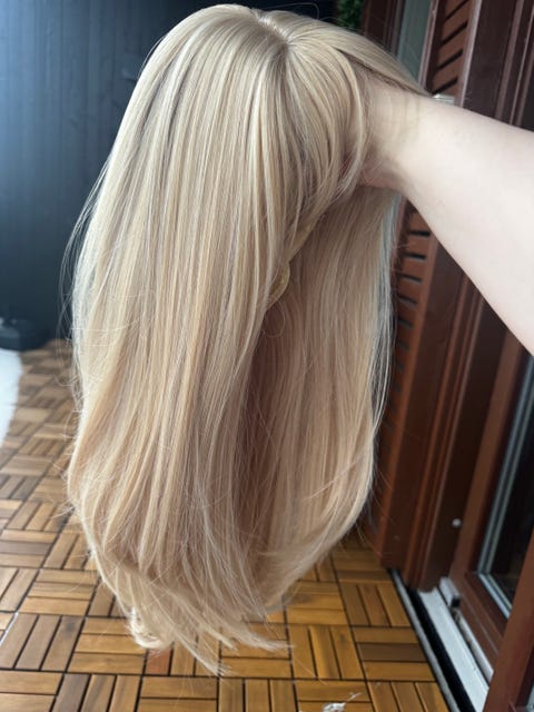Blond parykk langt hår med lugg