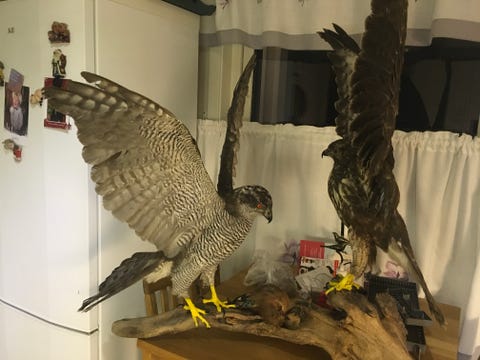 Hønsehauk og musvåk på rot