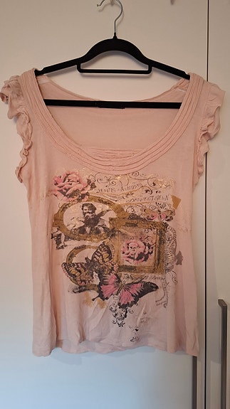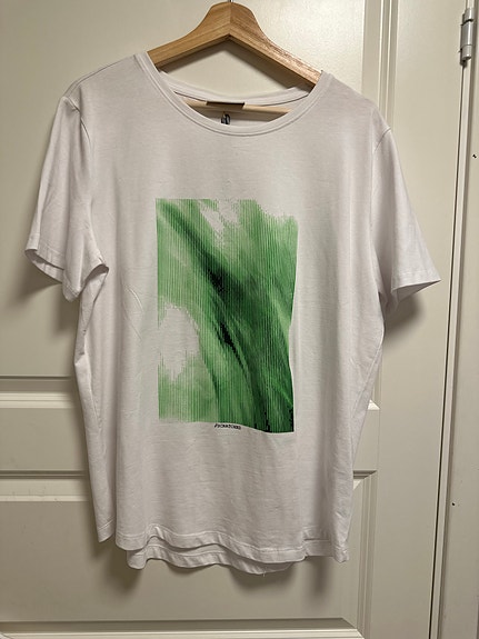 FREEQUENT T-skjorte XL hvit bomull med grønt print
