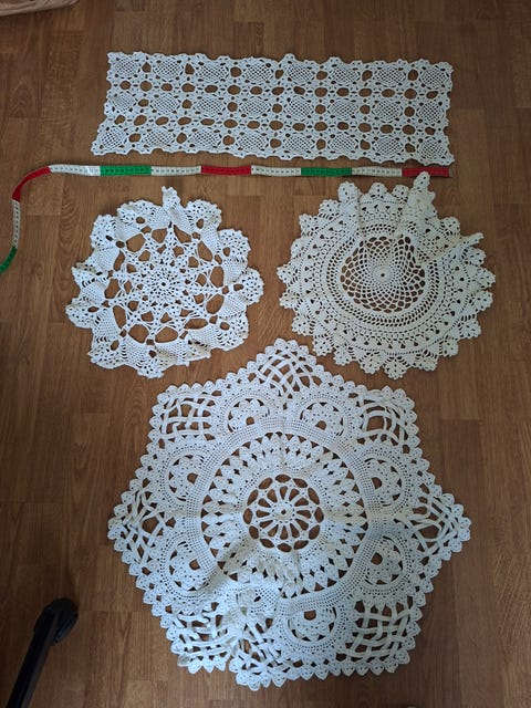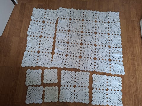 Sett med heklede duker