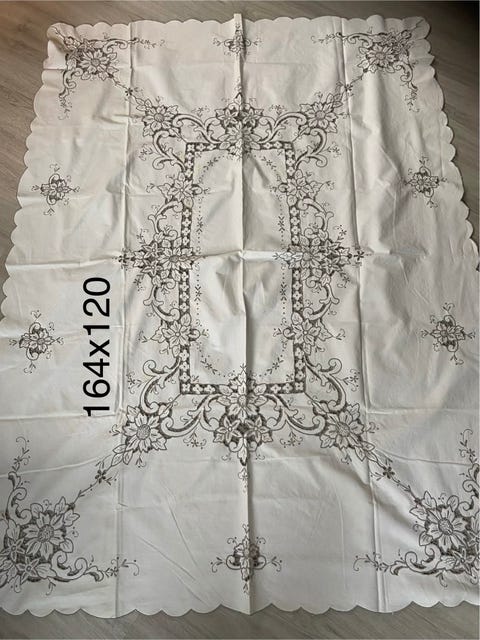 Håndbrodert duk i lin.