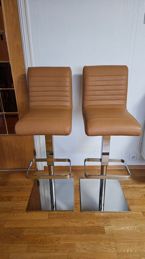 2 stk. Barstoler, ekte skinn