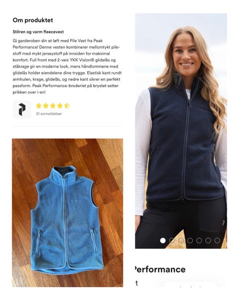 Antikviteter og kunst (677)Dyr og utstyr (585)Elektronikk og hvitevarer (111)Foreldre og barn (1 465)Fritid, hobby og underholdning (2 352)Hage, oppussing og hus (64)Klær, kosmetikk og tilbehør (53 228)Møbler og interiør (980)Næringsvirksomhet (88)Sport og friluftsliv (10 153)Utstyr til bil, båt og MC (195)