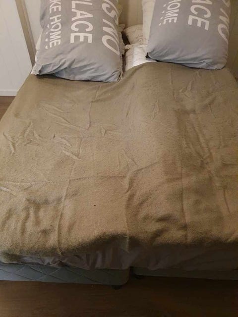 Gammel seng med nattbord og stol