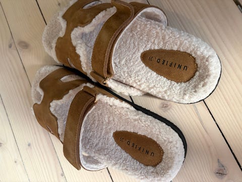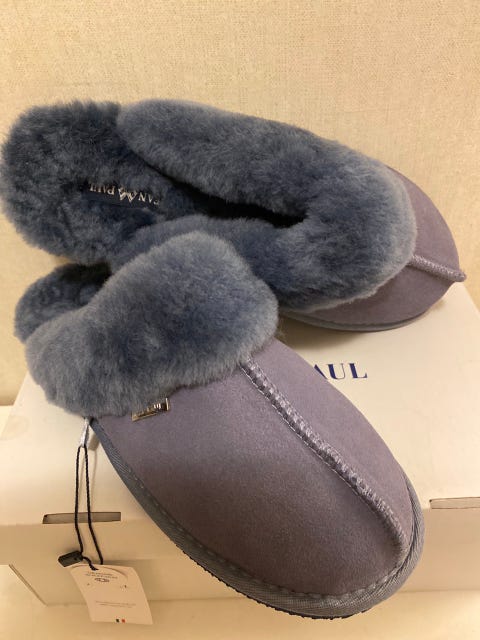 Jean & Paul. Navy blå skinn tøfler m/ saueskinn . str. 41. NYE, m/ merkelapp.