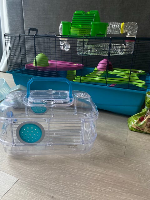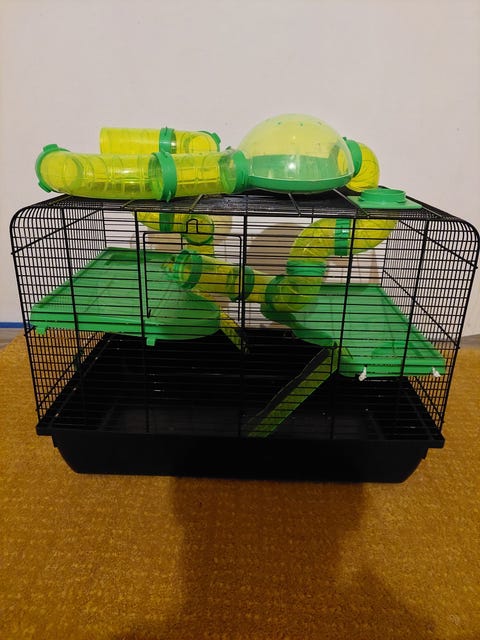 Hamsterbur med mye utstyr