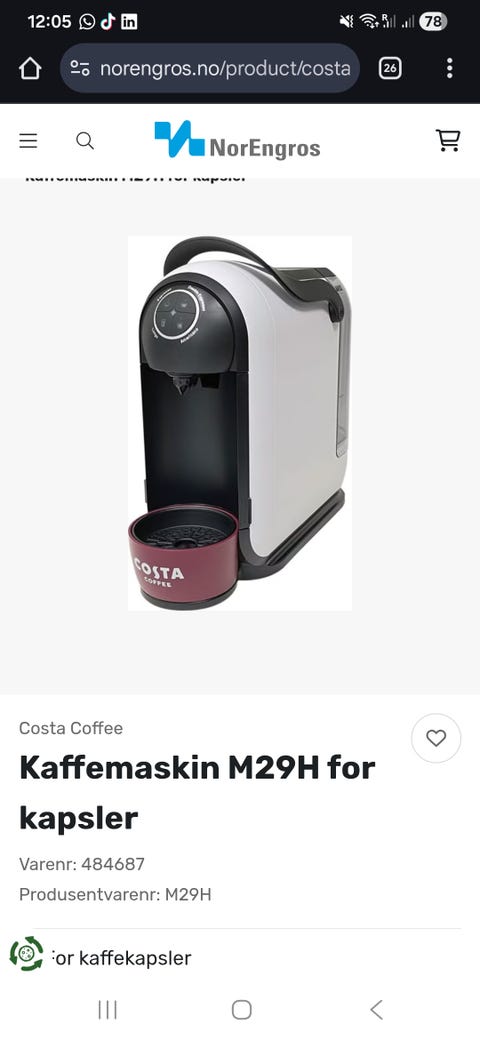 Costa kaffemaskin for kapsler