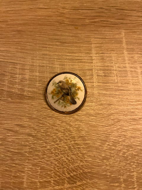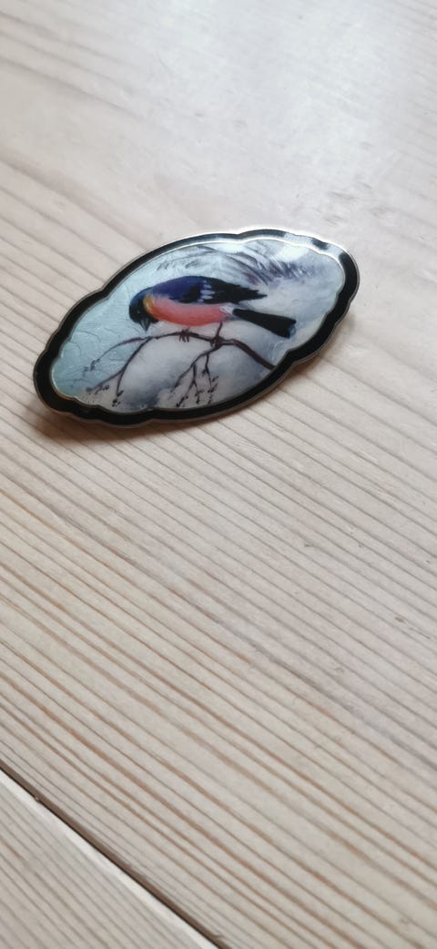 Brosje med fuglemotiv