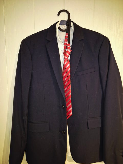 Pen guttejakke / dressjakke str. 170 med skjorte og slips – brukt én gang
