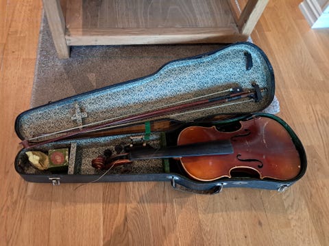 Gammel fiolin i kasse