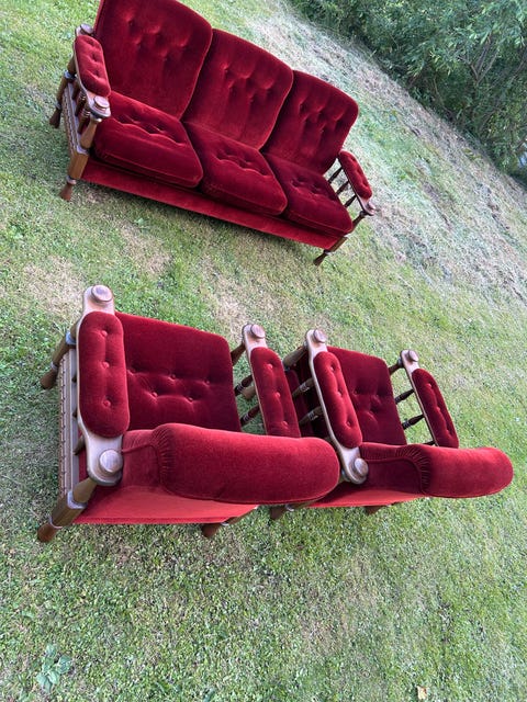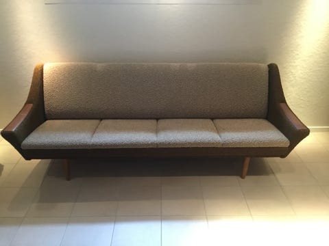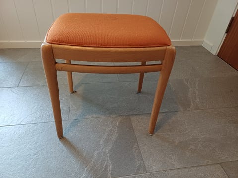 Retro stol i teak, eik og skinn ønsket kjøpt