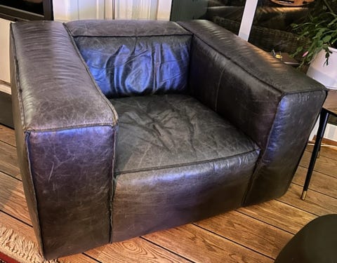 Stor lenestol i skinn