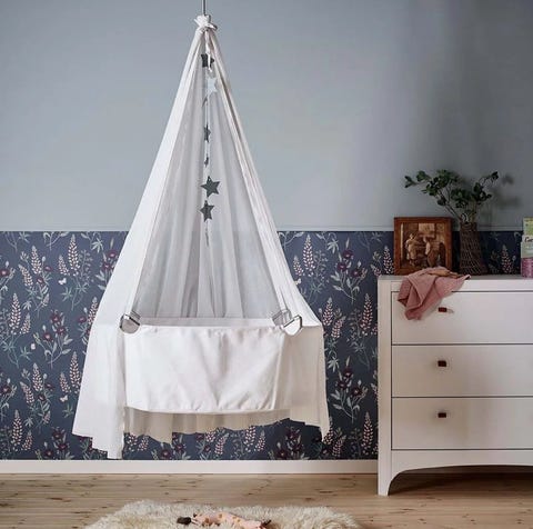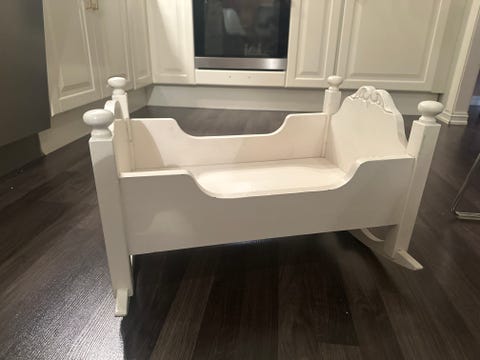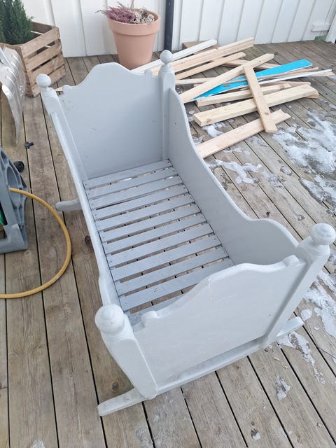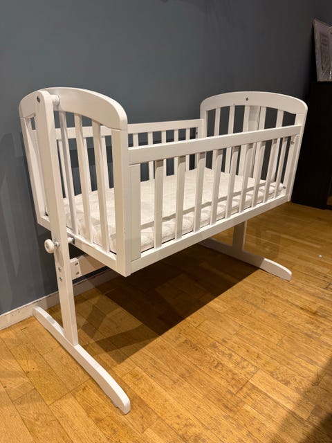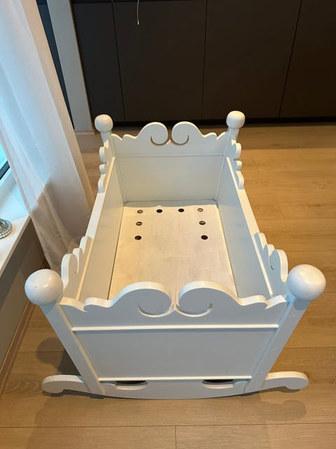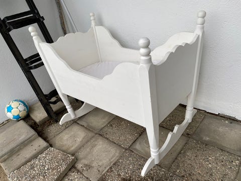 Hvitmalt vugge i heltre