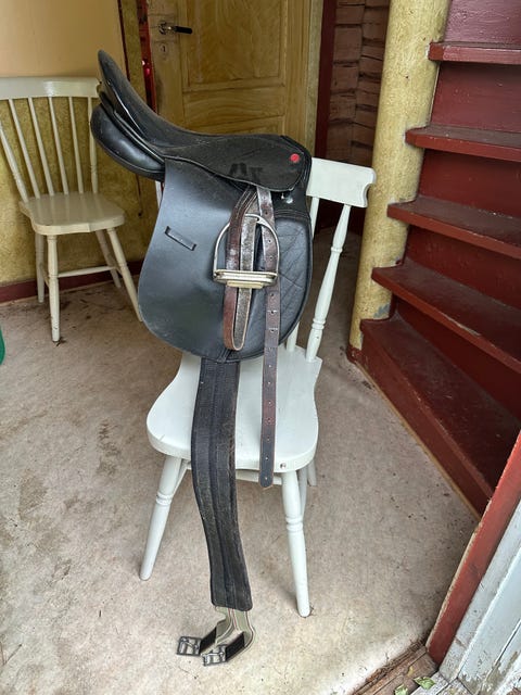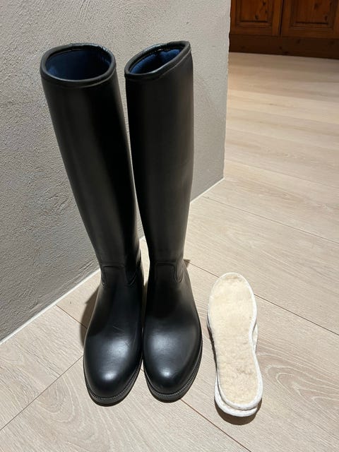 SKINN RIDESTØVLER + TRESKO TRÆR